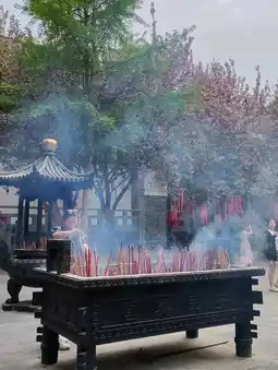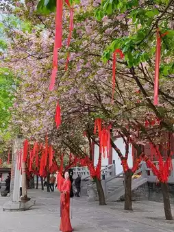If you're traveling to Xi'an during cherry blossom season, don't miss the stunning blooms at Qinglong Temple. The temple boasts a variety of cherry blossom species and colors, making it a prime spot for viewing in early April. While the cherry blossoms are at their peak, the temple is crowded with visitors, many dressed in traditional Hanfu attire for photos, creating a lively and interesting atmosphere.