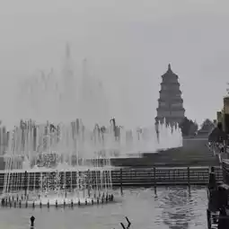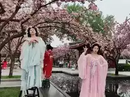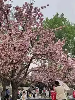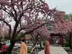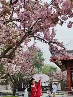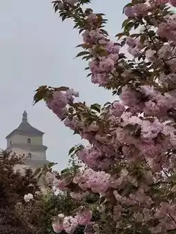 In early April, you can still enjoy cherry blossoms in Xi'an, with the cherry trees at Giant Wild Goose Pagoda Square in full bloom. However, the area is crowded with people, especially photographers in traditional Hanfu attire, making it challenging to find a quiet spot for photos.
