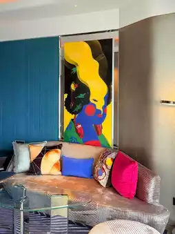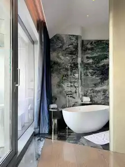 The room layout isn't super conventional, but the modern style is a plus—no outdated hotel vibes. However, the bathtub is connected to the living area, separated only by a symbolic screen. Taking a bath in the living room feels a bit odd. (Pic 4)