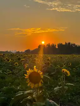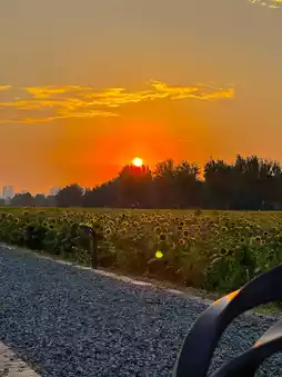 In the evening, the beautiful sunset and sunflowers complement each other. The sunset is around 6:30, but it gets dark quickly, and night falls around 7:00, so you must grasp the time.