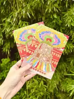 Inside the temple, you can scan the QR code to follow the official account and receive a free Yellow Jambhala card. There are also free Buddhist scriptures and Green Tara amulet cards available.