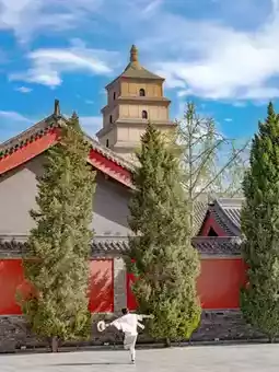 In the ancient capital of Xi'an, the Big Wild Goose Pagoda stands like a silent tower of time, reaching towards the heavens. Its blue brick and gray tiles, the eaves and corners shift with the light and shadow. As the morning light casts its shadow across the temple courtyard and stone paths, every breath reveals the depth of history and the tranquility of Buddhism.