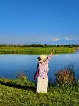 If you want to bring kids to play in the water and dig in the sand ๐ฆ, you can come here. You can also watch the sunset ๐. Navigate to "PetroChina Haojing Gas Station," then walk 15 minutes along the lakeside to get there~