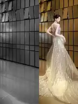 ✨ Walls adorned with golden glass bricks, creating a palace-like grandeur under the dome
