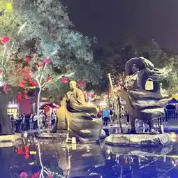 As night falls, walk into the lively Great Tang All Day Mall (大唐不夜城). This pedestrian street bursts with lights, music, and performances — from Tang-style dancers and musicians to glowing statues and street shows. The atmosphere is festive and modern, yet rooted in the grandeur of the Tang Dynasty.