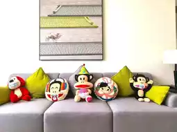 •🌟The guest room is a little paradise for kids: the cute dolls🧸 on the soft couch can serve as playmates, and the camel shadow 🖼️paintings of Chang 'an on the wall can tell little stories about the Silk Road to the kids. The bright yellow cushions are soft and cozy, making kids feel at ease even when they are playing and rolling around.👫
