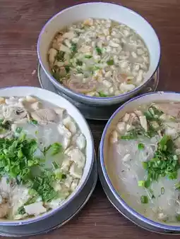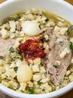 A breakfast staple from the Tang Dynasty: a thick, spicy broth with tofu, fried dough, and mushrooms. Dip a kaonan flatbread in it!