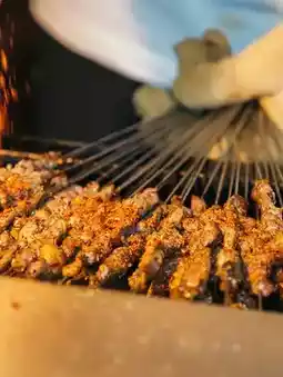 Succulent pieces of charcoal-grilled lamb sprinkled with cumin, pepper, and sesame. Best enjoyed with a cold beer in the evening!