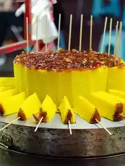 A traditional dessert made from glutinous rice with honey, sesame seeds, or red bean paste. Soft and chewy, they're a favorite among locals.
