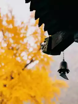 Golden leaves fall between the eaves, creating a soft rustling sound underfoot, like walking on a gilded carpet.