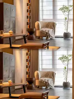 White walls paired with natural wood furniture, a Japanese residence vibe mixed with the rustic feel of Chang'an. Tea canisters and green plants sit in the corners, and the air carries a faint tea fragrance~ The communal tea area feels amazing; sit down and brew some southern Shaanxi green tea, instantly calming the travel jitters~ Every photo you take has a built-in filter, effortlessly capturing a serene atmosphere~