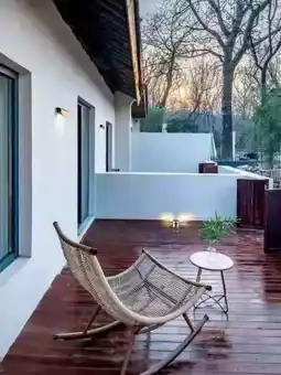 Sit on the balcony rocking chair at sunset,