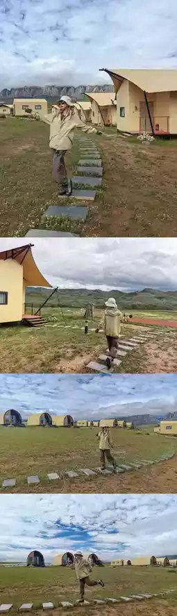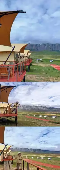 ☑️ Xiahe Ganjia Eco Camping Site 📸 Stepping into this eco camping site located in the heart of the Ganjia grassland feels like entering a world far from worries. Each tent is built with eco-friendly materials, not only sturdy and durable but also effectively insulated to ensure a comfortable and warm night even at 3000 meters altitude. Plus, every tent is equipped with star-rated hotel bedding, so you feel the warmth and comfort of home the moment you lie down. Our tent terraces offer a direct view of the “White Stone Cliff” — absolutely stunning! After visiting the attractions, return to the camp to keep snapping photos (fly fly fly) until you witness the breathtaking fiery sunset clouds!