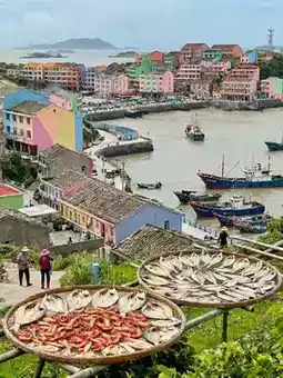 Four hours from Shanghai, Gouqi Island has half the visitors of Zhujiajian, and the October blue sea is as clear as a gem. A must-do is to visit Dongya Cliff at 5 a.m.; a 50 RMB ticket grants you the first sunrise over the East China Sea, painting the sea red with breathtaking views. The sound of waves crashing against the cliffs adds to the atmosphere. Rent a 50 RMB/day electric scooter to circle the village during the day. Colorful houses, seaside lawns, and fishing ports create a fresh picture. The old street in Dawang Village shows fishermen drying their catch. The free Gouqi Beach is quiet and peaceful, perfect for walking on the sand and listening to the wind—super healing.