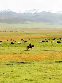 Four hours’ drive from Lanzhou, Sangke Grassland still has greenery in October, with herds of cattle and sheep and affordable prices. The free core area offers 50 RMB Tibetan costume rentals for photos, 80 RMB/hour horseback rides across the grassland, and you can watch herders milk cows, immersing yourself in nomadic life. A 1 km hike leads to Dazong Lake (30 RMB entrance), where the blue water reflects snowy mountains, surrounded by wildflowers like a fairyland.