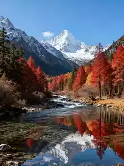 Just a 3.5-hour drive from Chengdu, Siguniang Mountain has 80% fewer visitors than Jiuzhaigou and is a hidden paradise for outdoor enthusiasts. In October, the snow-capped mountains and colorful forests reflect each other, with streams flowing through the woods, like a real-life fairy tale. The core attraction is Shuangqiao Valley, where a 150 RMB ticket plus sightseeing bus package unlocks Windows desktop-level views of redwood forests reflecting on the lake. The snow on Yaomei Peak remains year-round, making every shot a masterpiece. If you have the stamina, be sure to hike the 3-5 km wooden plank trail in Changping Valley through the primeval forest. When tired, spend 150 RMB to ride a horse uphill and get close to glacial relics.