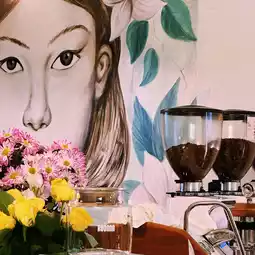 The store is small, but quiet, cozy, and simply but retro in decoration. The large wall paintings with rich colors and the many green plants in the store create a strong overall atmosphere.