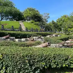 Hulishan Fortress is located on the Hulishan coast in Xiamen, southern Fujian Province, China. The construction of this fortress began in 1891 during the Qing Dynasty and took five years to complete. Several cannons from that era still remain. One of the most famous cannons is a 28cm caliber, 13.96m long cannon with a range of about 16km, which was purchased from the German company Krupp. Near the fortress, there is the Xiamen Glory Treasure Museum, which houses five exhibition halls displaying ancient cannons, ancient swords, ancient firearms, world rare stones, and ancient tree fossils. The treasures from the 13th-14th century Western Europe and various Asian countries are exhibited here. From the vicinity of the fortress, you can also see Taiwan's Kinmen Island.
