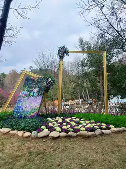 Navigate to the parking lot at the west gate of Tianzhu Mountain, then take a sightseeing bus to get off at Four Seasons Flower Valley. Go straight for about 300 meters.