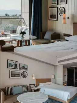 Most rooms have walk-in ocean-view balconies where you can immerse yourself in the city's pulse and wake up and fall asleep with the sea. Rooms are equipped with King Koil mattresses, Bluetooth speakers, capsule coffee machines, and other quality amenities! The beds here are incredibly comfortable, guaranteeing a good night's sleep! There are also three pillow options to choose from: silk floss, memory foam, and buckwheat, which is very thoughtful.