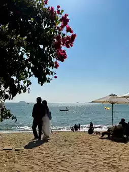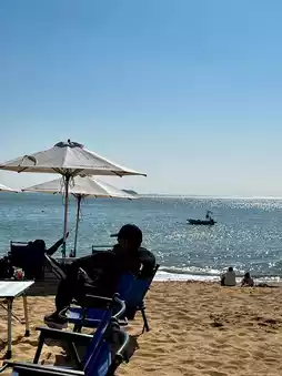 A good place to watch the sunrise in Xiamen🌅 There are lazy sofas/parasols⛱️/beach swings on the beach, just like California beaches