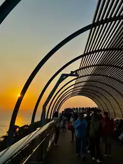 Arrive at Tianquan Trail Square at 5 o'clock, and walk for 10 minutes to reach the arched sunset trail! Watching the sunset with mountains behind and the sea in front🌇 is really beautiful😭 Walk further forward to the Panguita Observation Deck extending out to the sea~ It is also a romantic landmark in Xiamen