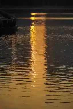 The setting sun slowly sinks to the west and the afterglow falls on the lake