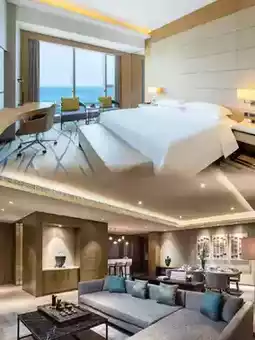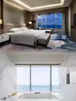 The hotel offers over 600 rooms and suites, with standard rooms starting from 42 square meters and featuring practical layouts. All rooms come with viewing balconies, and more than 70% offer various degrees of ocean views. The rooms continue the ocean theme, with light blue tones paired with wooden elements creating a fresh and natural ambiance. Wave patterns above the bed and shell-shaped lighting fixtures showcase thoughtful design details. The "Deluxe Ocean View Rooms" on the upper floors are especially recommended, featuring unobstructed bay views and window-side bathtubs for a relaxing soak with sea views. All rooms are equipped with high-quality amenities including King Koil mattresses, smart control systems, and capsule coffee machines, while some suites feature separate living and dining areas.