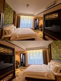 The hotel is surrounded by mountains with breathtaking scenery, and it's a hot spring hotel with a strong Southeast Asian style.