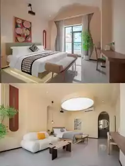 🛏️Facilities: The hotel has super complete facilities, including a huge swimming pool, perfect for swimming enthusiasts or those who want to take photos 📷. It also provides elevators, which are very convenient for tourists with luggage 💐 or families traveling together. The rooms are equipped with full smart voice control and a super large projector. Some room types also have a starry sky bathtub and floor-to-ceiling sea view windows, allowing you to enjoy the beautiful scenery 🌺 from the comfort of your bed. In addition, there are also diversified room types such as family rooms and river view rooms with king-size beds to meet the needs of different travelers.