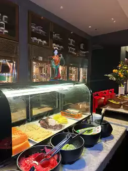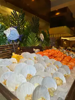 The seafood section is stocked with fresh shrimp, crab, and mussels, all generously sized and ultra-fresh. The sashimi at the Japanese counter is exceptional, with thick-cut salmon and sweet shrimp of premium quality. The hot dishes, desserts, and snacks are equally diverse, with every item a hit. My family ate from opening to closing—literally waddled out! Don’t miss this experience!