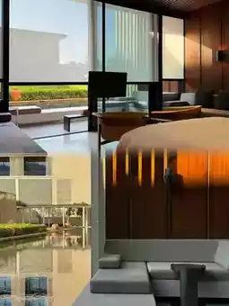 1⃣️🍁 This time at The Seven Villas, I chose the Lakeside Garden View One-Bedroom Suite on the first floor. The 65-square-meter room is similar in size to the basic room type, but the lakeside residence seems to better fulfill the imagination of an urban getaway. Walking through the dappled light corridor, the moment you open the door, you'll be captivated by the serene garden view outside the floor-to-ceiling windows, inviting you to step right in ✨