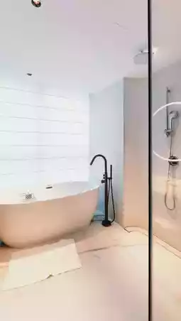 The sea-view room is a delightful surprise. Opening the balcony door, the salty breeze rushes in, and across the water, Gulangyu’s red rooftops gleam like gems scattered on a green carpet, while the distant Twin Towers shimmer in the sunlight. The room’s minimalist design features light wood furniture paired with blue cushions, as if weaving the sea into every detail. My favorite touch is the smart speaker by the bed—just say, "Open the curtains," and the ocean vista floods the room. Waking up to sunlight, I often feel like I’m floating on the sea.