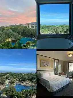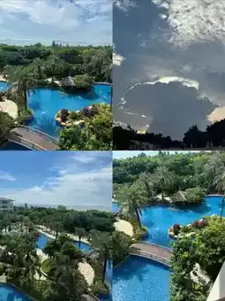 The hotel is tucked away on Huandao Road, built on a hillside facing the sea, with exquisitely maintained tropical gardens—lush vegetation like a "mini botanical garden." Palm trees and flowers are everywhere during your stroll, with a new view at every step, and even the air smells of greenery. Waking up to birdsong and chasing butterflies with your kids in the garden is more healing than visiting a tourist spot.