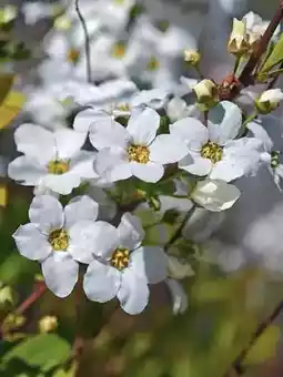 Looking closely at this floral wonder is like stepping into a miniature galaxy. The slender branches, as delicate as embroidery threads, stubbornly stretch outward, each twig crowded with clusters of tiny white flowers—each only the size of a grain of rice, with petals as thin as cicada wings, layered and wrapped into spherical shapes, like scattered pearls on green branches. At full bloom, the entire shrub wears a simple white robe, from afar resembling snow weighing down the branches, out of season; up close, a faint fresh fragrance mixed with the moist scent of plants fills the air, refreshing the soul. When the breeze passes, the flower branches gently sway, and the white blossoms flutter down like snowflakes, resembling a gentle "fragrant snow rain" in April, falling on shoulders and covering stone steps, adding a final touch of elegance to late spring.