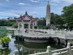As you approach the temple, you'll pass a large circular fence and see the temple and the release pond in front of the lotus pond. Bougainvillea, kapok, phoenix trees, and bodhi trees flourish year-round, always in bloom. The lotus flowers in the pond compete to blossom, their reflections in the water mirroring the blue sky, white pagodas, and green trees, creating a pristine atmosphere that captivates visitors. I believe the beings here are blessed with universal light, always vibrant, yet they also attract a steady stream of tourists. The vegetarian food at Nanputuo Temple is also a highlight and worth trying. Arrive early to avoid long queues at lunchtime, as the dishes are highly sought after.