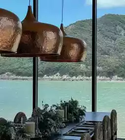 Lying in the room, you can see the sunset shining on the sea, setting off the Buddha Head Mountain on the other side. It's so beautiful!!