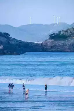 When driving, you will first pass a viewing platform where you can overlook the entire beach and the distant islands and windmills, which is quite charming with the houses by the sea. You can play in the water and set up tents here. There are restrooms and food available. It is the bluest seawater that you can drive to in Xiangshan.