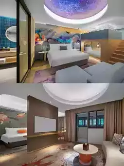 Yet, the hotel's inherent fishing-town heritage sets it apart from other ancient towns. From spaces and courtyards named with maritime elements like "Fishing Bay Restaurant," "Sand Crab Paradise," "Blue Tears Bar," "Listening to the Sea," and "Treading the Waves," to the school-of-fish chandelier in the lobby, the massive anchors and rudders displayed along the paths, and the marine-themed details throughout the public areas—every corner reflects Shipu's local culture.