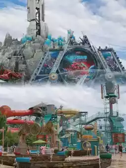 ✅ Mechanical Water Fortress: 30+ water sprays + spiral slide, a must for families! Water depth 0.5-1 meter, parents can relax by the lazy river nearby