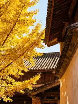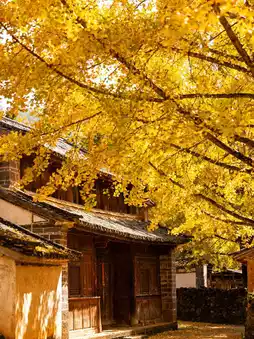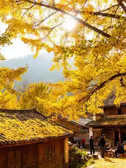 The village's old houses are neatly arranged, with white walls, black tiles, or yellow-brown walls contrasting beautifully with the golden ginkgo trees. Whether you're photographing from under the trees, looking down on the village from above, or focusing on the play of angles between the walls, eaves, and ginkgo branches, every angle offers breathtaking images, as if time has slowed down.