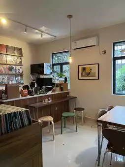 #朱海景点 I found a Japanese-style coffee shop "Chicha Xiaojing" in Zhuhai that makes people calm down instantly. It is hidden in the alleys of residential buildings. Pushing open the wooden door is like walking into a Japanese drama scene~ Warm yellow lights are matched with solid wood furniture, old movie posters are hung on the wall, and even the air is filled with the aroma of coffee beans and cinnamon. I was immediately attracted by it!