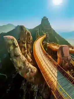 2. The cliffside plank walk at Taizhou Xianju Mountain (resembling a Buddha hand)