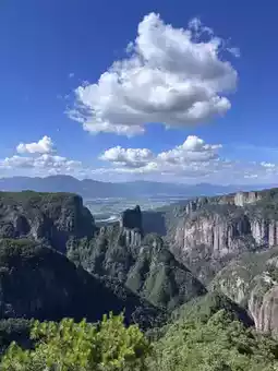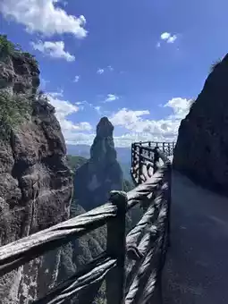 Climb along the trail, passing scenic spots such as Yunping Waterfall, Xianren Bridge, and Xianren Cave, each offering breathtaking photo opportunities. Stroll along the stone paths, soaking in the cool breeze of the stream and the fragrance of the forest. Occasionally, mist rises, and the mountains loom, creating a fairyland-like experience.