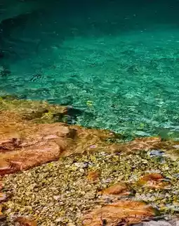 Navigation: Park and walk 200m, exclusive water surface before 9 AM, stunning blue-green gradient under direct sunlight.