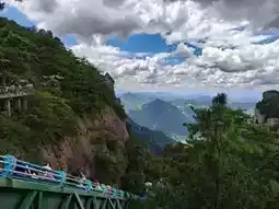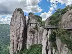 Strolling along the cliffside plank road, Guanyin Peak and Buddha Peak appear one after another, making you marvel at nature’s craftsmanship. The sound of flowing streams accompanies you all the way, occasionally encountering waterfalls pouring like jade, cool and refreshing. Although your calves may ache from climbing, every turn brings a surprise, and every step gets you closer to the sky.
