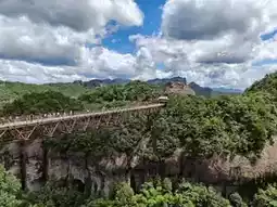 Taking the cable car slowly upward, the forest beneath surges like waves, as if entering a world of immortals and heroes in advance. The most stunning sight is the "Ruyi Bridge" suspended hundreds of meters in the air. The glass bridge floor reveals deep valleys below; it takes some courage to walk on it, but the 360° view surrounded by strange peaks is absolutely worth it! When the mist swirls, it truly feels like "riding the wind on air."