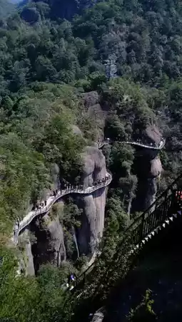 The "Sky Bridge" praised by CCTV! Cliff plank road + cloud walk, full of fairy aura! ✨ Shenxianju, a place where immortals live. During last year’s National Day holiday, a new "internet-famous" bridge was added—the Ruyi Bridge. From aerial shots, its design perfectly blends strength and grace with the natural scenery of Shenxianju, resembling a jade Ruyi scepter floating in the air or a fairy’s flowing scarf. The Ruyi Bridge not only symbolizes good fortune and wishes coming true but also looks very much like a Ruyi scepter. With the Spring Festival approaching, many tourists bring their families to Shenxianju to visit and pray for blessings. The Ruyi Bridge has become a must-visit spot for visitors to Shenxianju. Walking on the Ruyi Bridge, a glass bridge suspended in the air with a deep abyss below, is thrilling and heart-pounding.