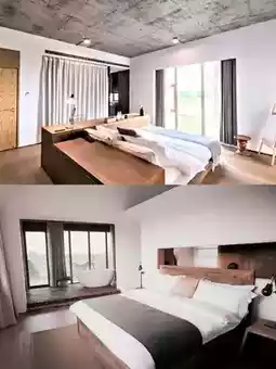 - Yilan Fanghua Boutique Homestay Hotel: Featuring natural wood materials paired with wheat ears, linen, and rattan decorations, it’s rustic yet cozy. There are 22 rooms in 3 types, combining design and comfort.