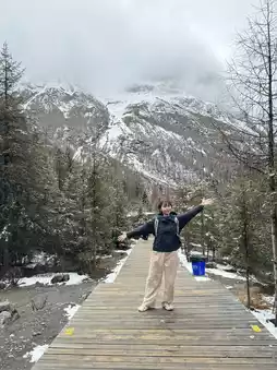 🏔️Visit the Four Girls Mountains, Songqiao Trail, a mountain with beautiful views in every season, which are different. Let's visit in early April. There is still snow covering the mountain. The view is very beautiful.
